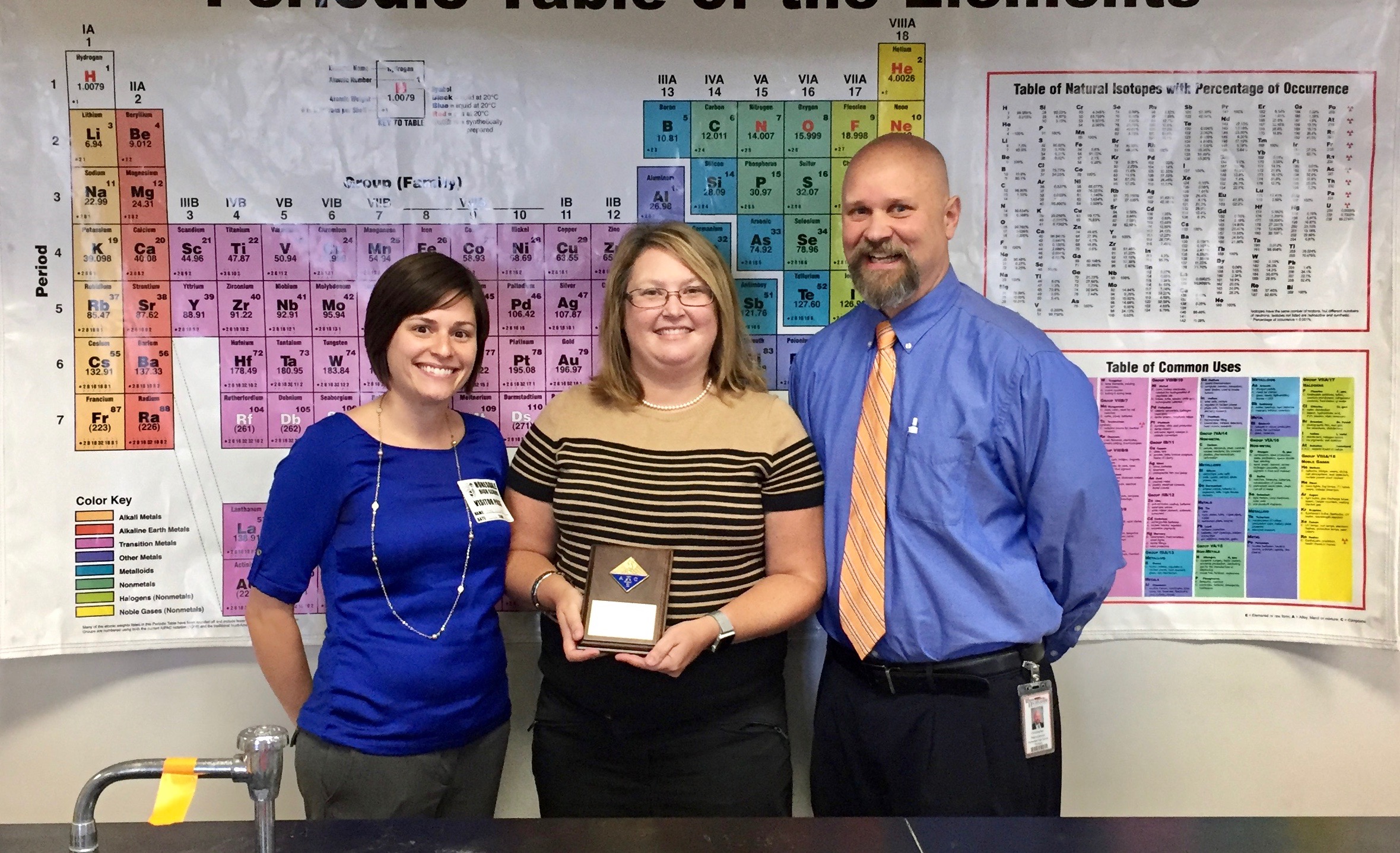 During National Chemistry week (October 16-22) the Susquehanna Valley Section of the American Chemical Society recognizes an Outstanding Chemistry Teacher. This year Mrs. Michelle Tonkin has been selected for the honor. Mrs. Tonkin, Honesdale High School Chemistry teacher, was presented with the Ronald C. Blatchley Chemistry Teacher of the Year award. The prestigious award that Mrs. Tonkin received comes with a $500 stipend to attend a Chemistry conference on the national level.