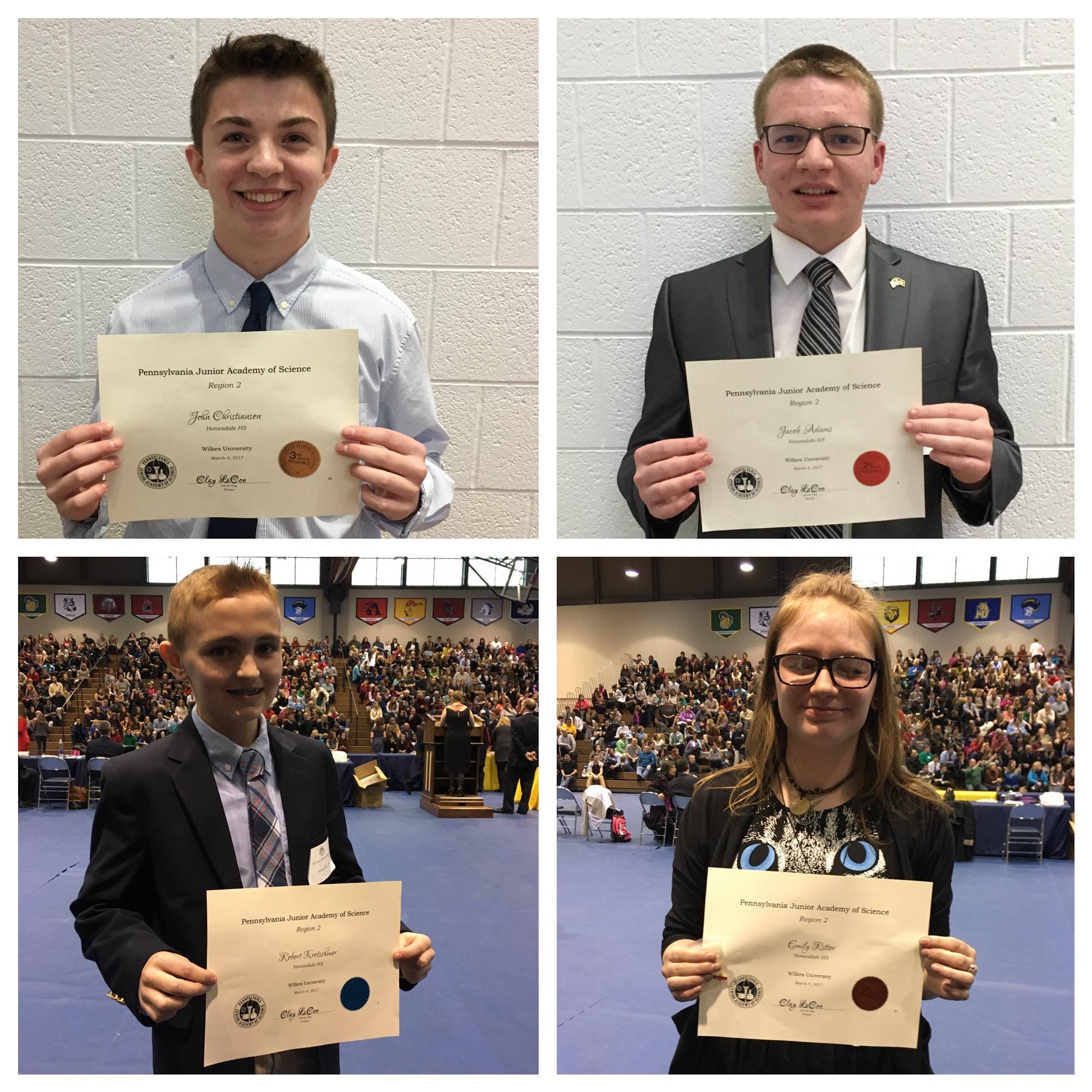 Wilkes-Barre, PA - Thirteen students from Wayne Highlands Middle School and Honesdale High School competed Saturday, March 4th at the 82nd Annual Region 2 Meeting for the Pennsylvania Junior Academy of Science or PJAS. This year's meeting was once again hosted by Wilkes University for 750 students from 7th-12th grades from seven counties in northeastern Pennsylvania.