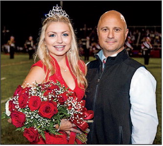 Raegan Fuller, 2017 Homecoming Queen, is shown with Wayne Highlands Superintendent Greg Frigoletto. [PHOTO BY BOB JENNINGS PHOTOGRAPHY]