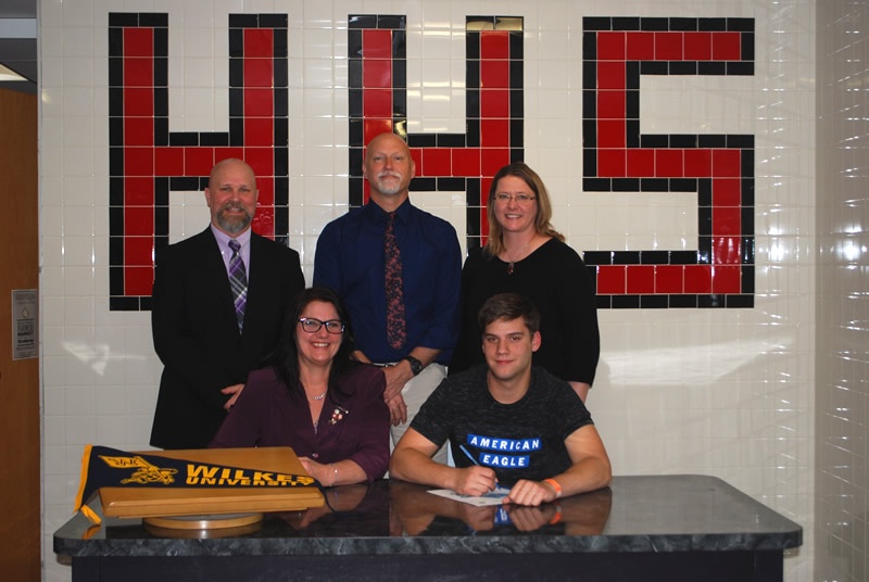 Wil Rieger of Honesdale has announced that he will be continuing his academic and athletic career at the NCAA level. Rieger will attend Wilkes University in the fall and play football. Present in the National Letter of Intent signing were High school principal Chris Pietraszewski, head football coach Mike Jurkowski and athletic director Diane Scarfalloto.