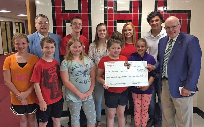The students gathered at Honesdale High School on June 14, along with a group of soon to be high school student council officers to deliver their check to lions Paul Meagher and Tony Herzog.